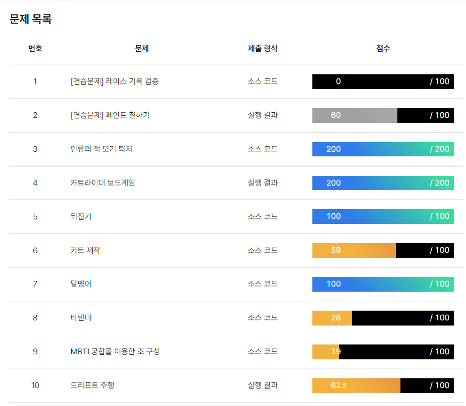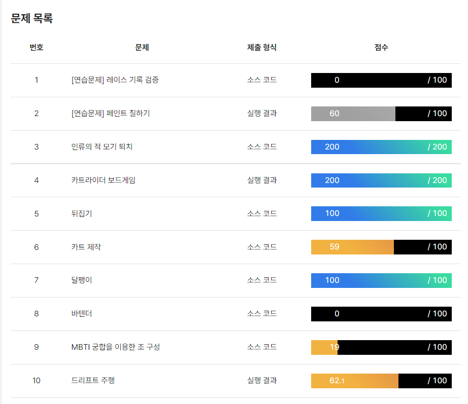문제가 어려워 져서, 이제 문제를 더 풀기는 조금 어려울 듯 하다.