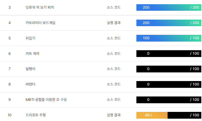 MBTI, 바텐더 정도로 부분점수 긁고 마지막은 걍 노가다나 해야겠다.